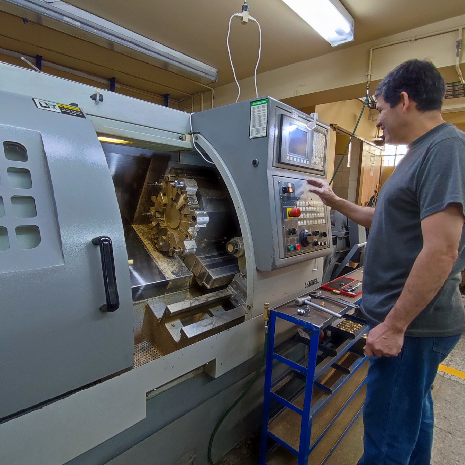 Contamos con tornos de control numérico (CNC) para el mecanizado de piezas en bronce latón, acetal, acero inoxidable, acrílico, con acabados en  cromado, zincado, sandblasteado entre otros.
